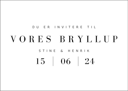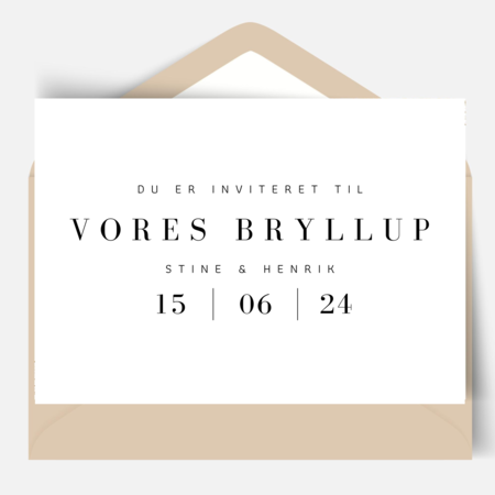 Fra elegante invitationer, der vil sætte tonen for din bryllupsfejring, til smukt designede bordkort og menukort, der vil imponere dine gæster, tilbyder vi alt, hvad du behøver for at skabe en smuk og mindeværdig bryllupsoplevelse. Vores produkter er nøje udvalgt for deres høje kvalitet, fine detaljer og enestående design, der vil give din bryllupsdag et strejf af magi og glamour.